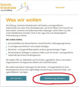 Der Nothilfeantrag ist fertig. In seiner letzten Sitzung hatte der Beirat der Stiftung die Einrichtung eines Antragsbuttons beschlossen. Jedes Kind, jeder Jugendliche dem für die